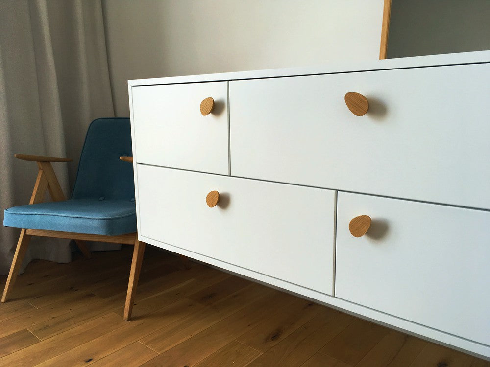 konstrukcji i wykończenia. Może się zdarzyć, że poszczególne uchwyty, gałki i wieszaki będą miały wymiary odrobinę inne niż te, które podajemy powyżej (różnice poniżej 1 mm). Kochamy naturalne materiały i pracę rąk, ich nieprzewidywalność i wyjątkowy charakter, ale zawsze dbamy o to, aby zamawiane przez Was uchwyty tworzyły spójną całość.