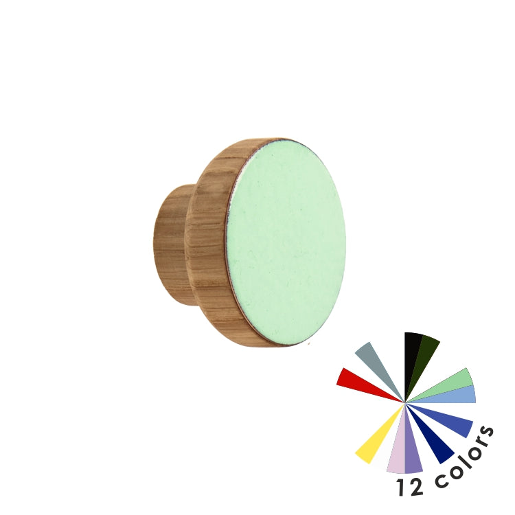 Drewniana gałka meblowa, ozdobiona na froncie emaliowaną miedzianą blach wypalaną w temperaturze około 850 stopni. Doskonale wpasowuje się we wnętrza nowoczesne jak i tradycyjne.
