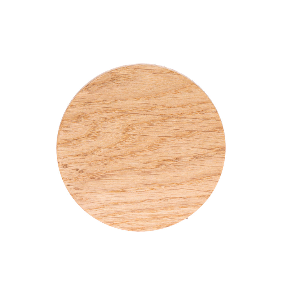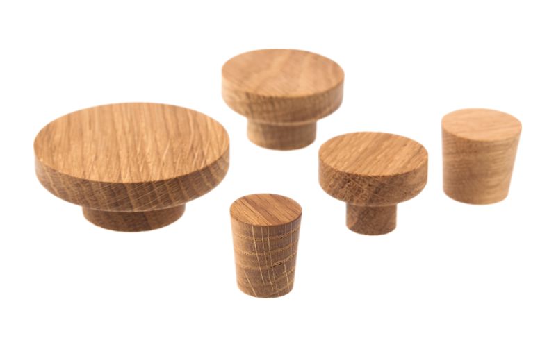 Oszczędne w formie, duże dębowe gałki do mebli.
