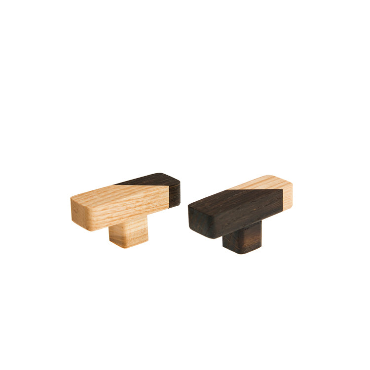 Prostokątne gałki meblowe z kolekcji JUST TWO o graficznym charakterze - T-BAR