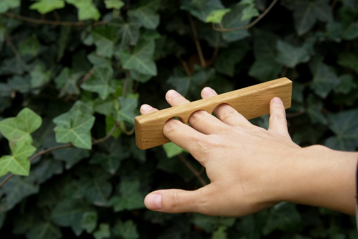 Dębowy modernistyczny uchwyt meblowy.