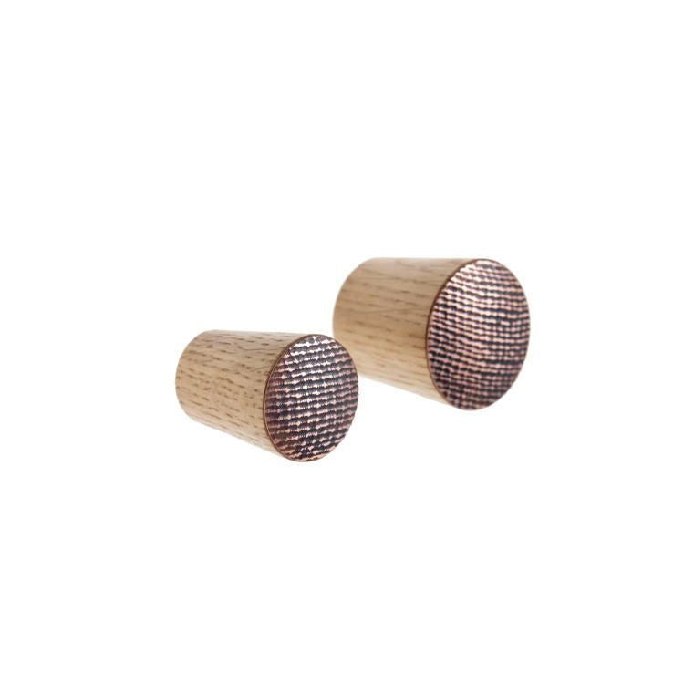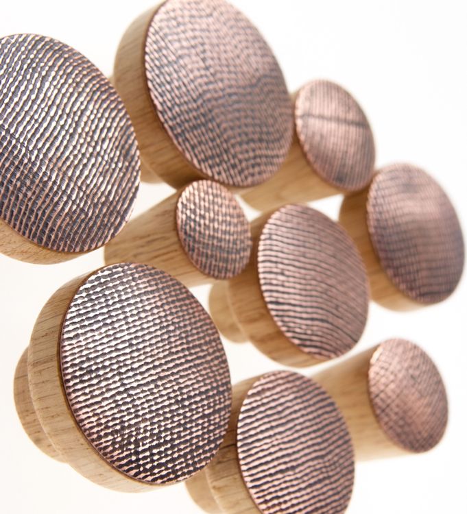 - Materials: oiled wood and oxidized copper